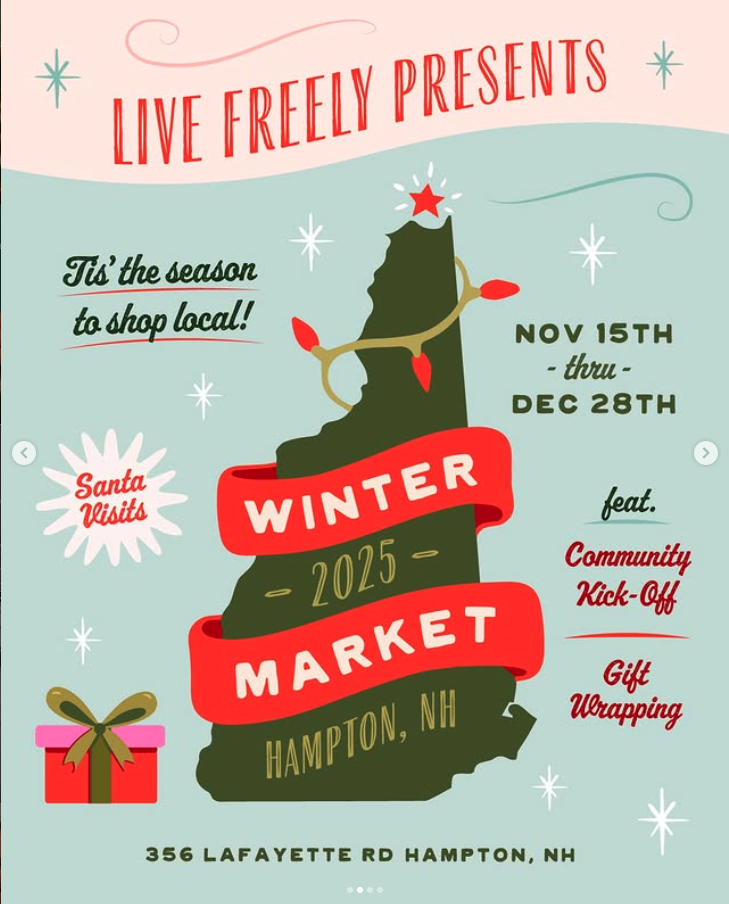 🎄 Live Freely Winter Market📍 356 Lafayette Road, Hampton, NH🕙 Open 10 AM – 6 PM (hours vary by date — full schedule below)📣 Public · Shop Small · Holiday Market