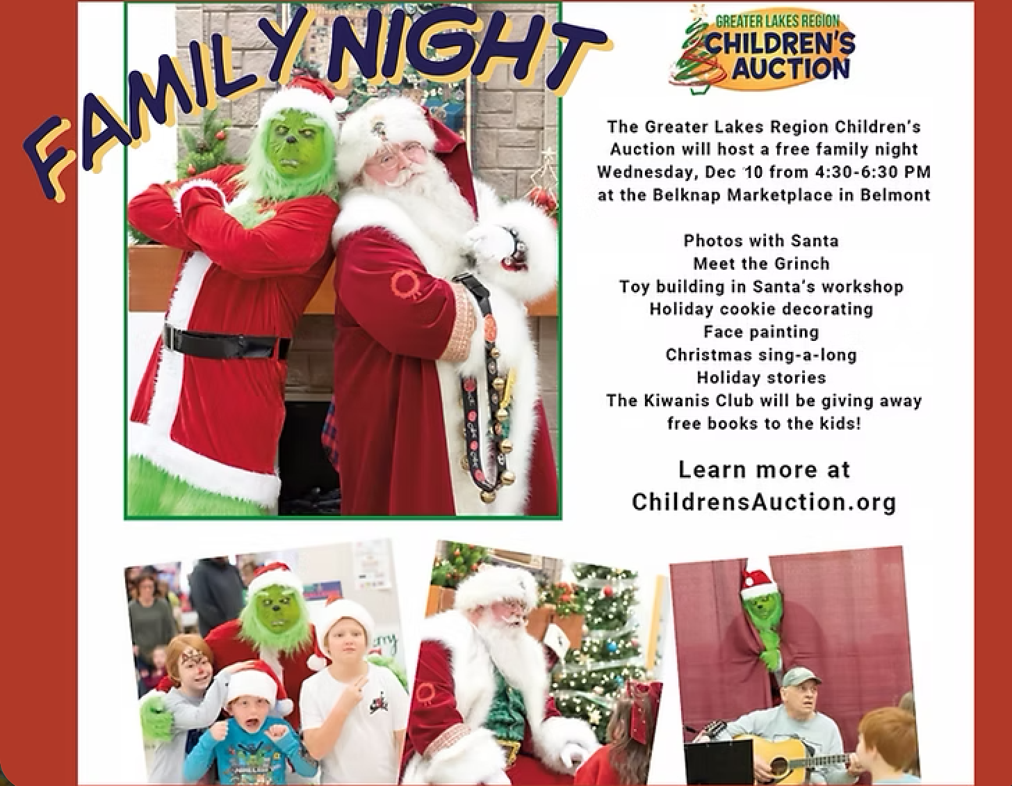 🎄 Family Night – Greater Lakes Region Children’s Auction📅 Tuesday, December 10 at 4:30 PM📍 Belknap Marketplace, Belmont