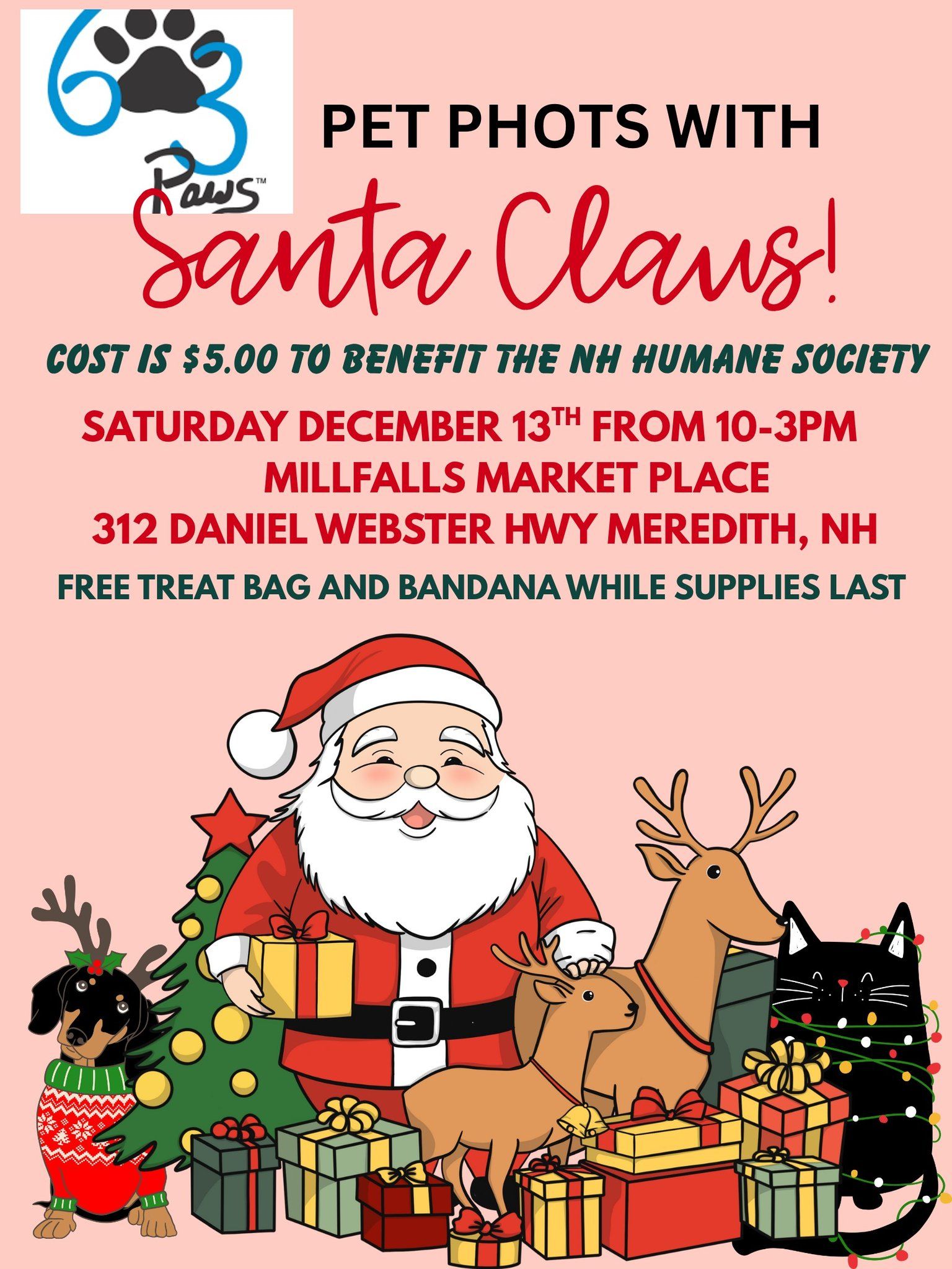 For just $5.00 per photo, your pet can strike their best pose with Santa — and 100% of the proceeds go directly to the New Hampshire Humane Society.