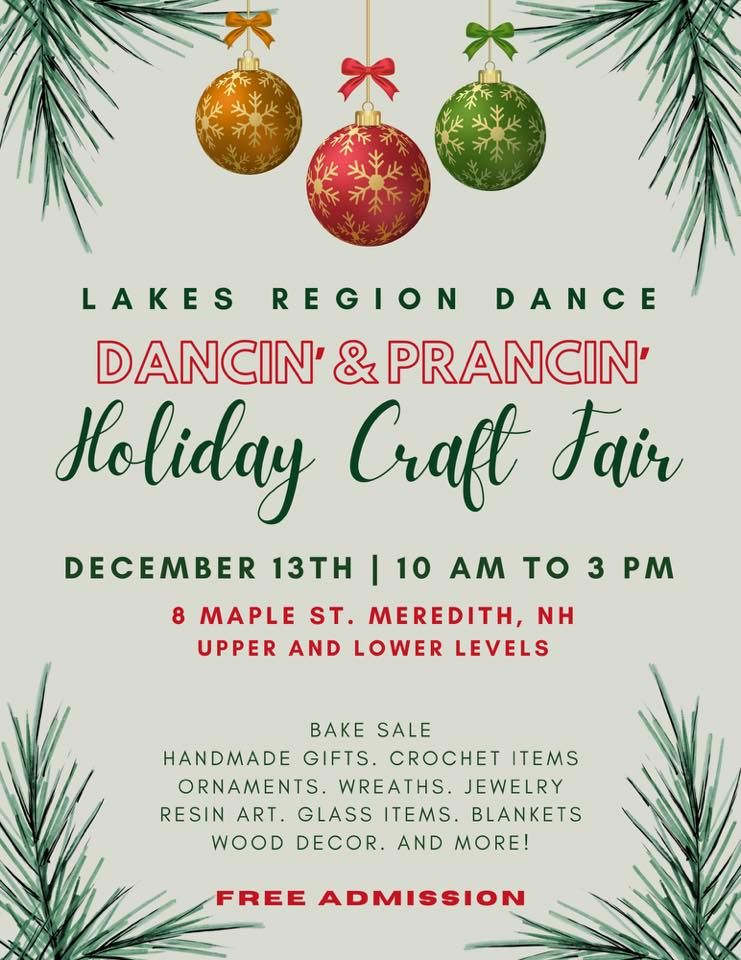 🎄 Dancin’ & Prancin’ Holiday Craft Fair📍 Lakes Region Dance – 8 Maple St., Meredith, NH🕙 Saturday Dec 13th 10:00 AM – 3:00 PM📣 Public · Holiday Shopping · Local Makers