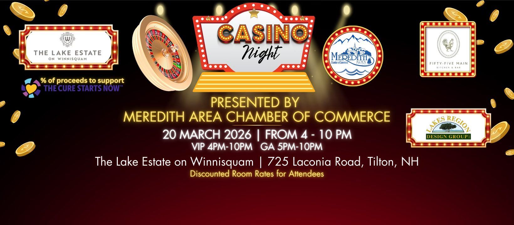 🎲 Meredith Area Chamber Casino Night 🎲📍 The Lake Estate on Winnisquam, 725 Laconia Rd., Tilton, NH🗓 Friday, March 20🕔 5:00 PM – 10:00 PM