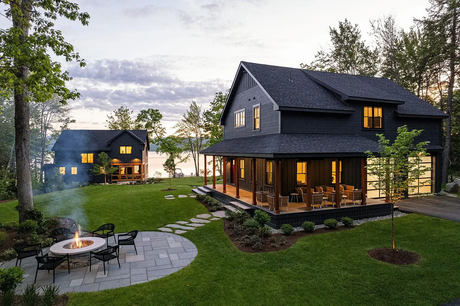 The Lookout, a newly built, custom craftsman home situated on a private 300’+ peninsula along the shores of Lake Winnipesaukee offers panoramic changing mountain views throughout the seasons. Upon entering the home, you will be drawn across the radiant heated VT slate floors to the water view outlined by floor to ceiling windows within the open-concept layout leading to the outdoor wrap around deck. The chef's kitchen is designed for entertaining with abundant granite counterspace, counter seating, & walnut cabinetry adjacent to the attached greenhouse. The gym/spa includes a Japanese soaking tub, steam shower and dry cedar sauna. Guests can use either of the main level bedrooms with lake views, separate deck entrances and oak flooring throughout. A glass staircase leads to the second story which includes a media area with a private balcony. The primary suite has a wall of windows, oak floors, sliding paneled fir doors and a vaulted fir ceiling with a walk-in closet with built-in walnut cabinets and granite counter tops. The bathroom has a freestanding soaking tub, marble shower and marble vanity. A private office is located off the suite with water views that could be used as an extra sleeping space. The detached garage has room for two cars underneath and has a year-round living space above. Unique to this property is the use of the association tennis courts, beach and clubhouse within walking distance. Perfectly nestled between downtown Meredith and downtown Center Harbor.