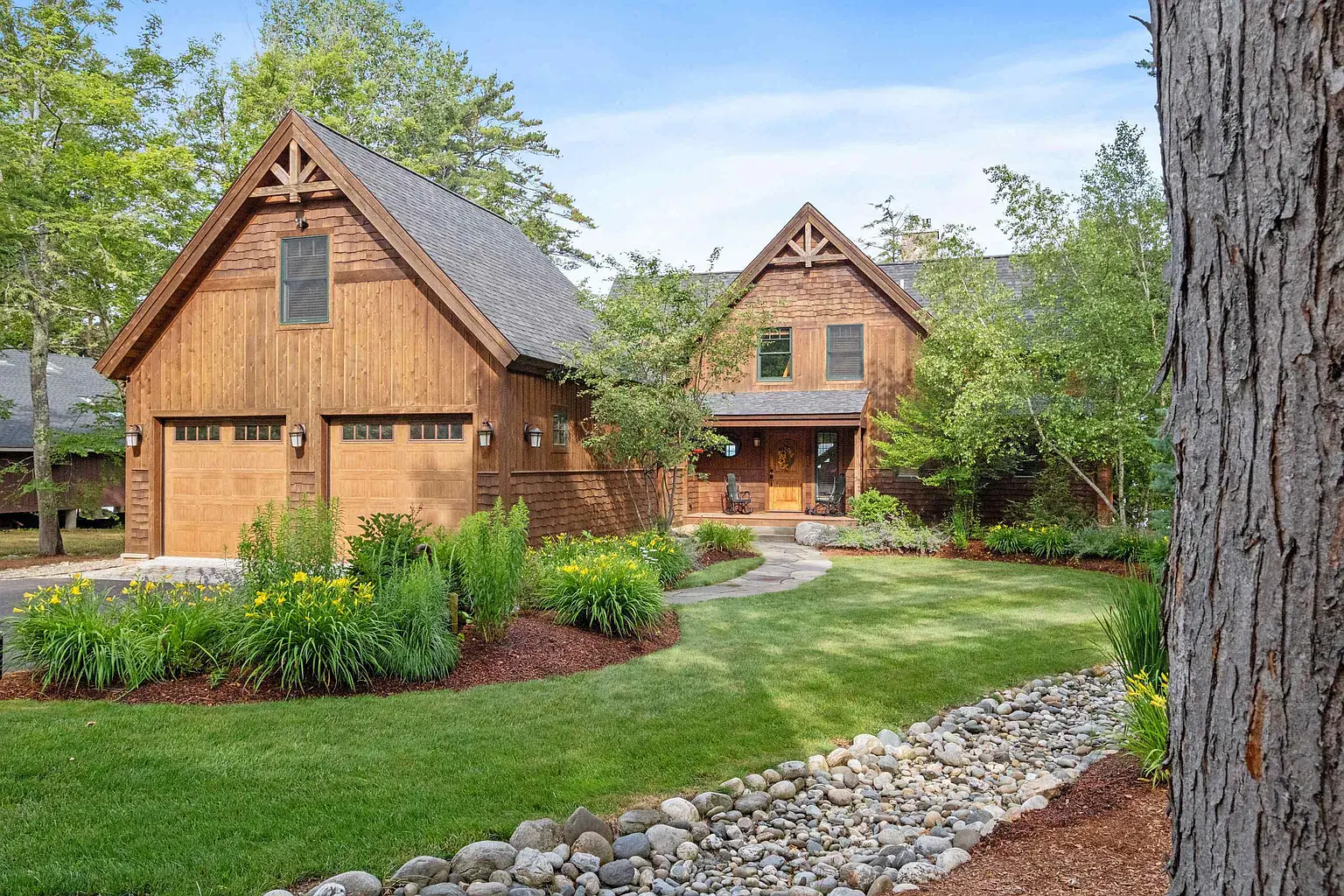 Minutes to Lake Winnipesaukee access with breathtaking views of Castle in the Clouds and the Ossipee Mountains, Shepard’s Watch awaits a new buyer for the very first time. Lined by fieldstone walls enter either of the two driveways to this shingle style, architect designed custom home. Dine and lounge in comfort in the open great room with its vaulted ceilings and two-story, wood burning fireplace surrounded by gorgeous built-in shelving. The reclaimed hardwood floors carryout through the first floor with luxury of radiant heat. Enter the vintage kitchen, inspired by 1800’s farmhouse living with all the modern conveniences, a center island and door access to the back yard patio for grilling or the front yard wrap-around porch for those country views. A secluded master suite with a stunning vaulted ceiling and wood burning fireplace includes a full bath and walk-in closets. The second story features two bedrooms, one with an adjoining office room, and a full bathroom featuring a beautifully reclaimed vanity dresser. The lower level has a direct access 2-car garage off the full basement. Bountiful storage space and a workout room has been partially finished. The property includes a year-round renovated 1900’s era caretakers’ cottage perfect for air BNB, or apartment space with proven rental income. Enjoy the fresh air off your porch in the morning or walk to the hiking trails at the castle down the street.